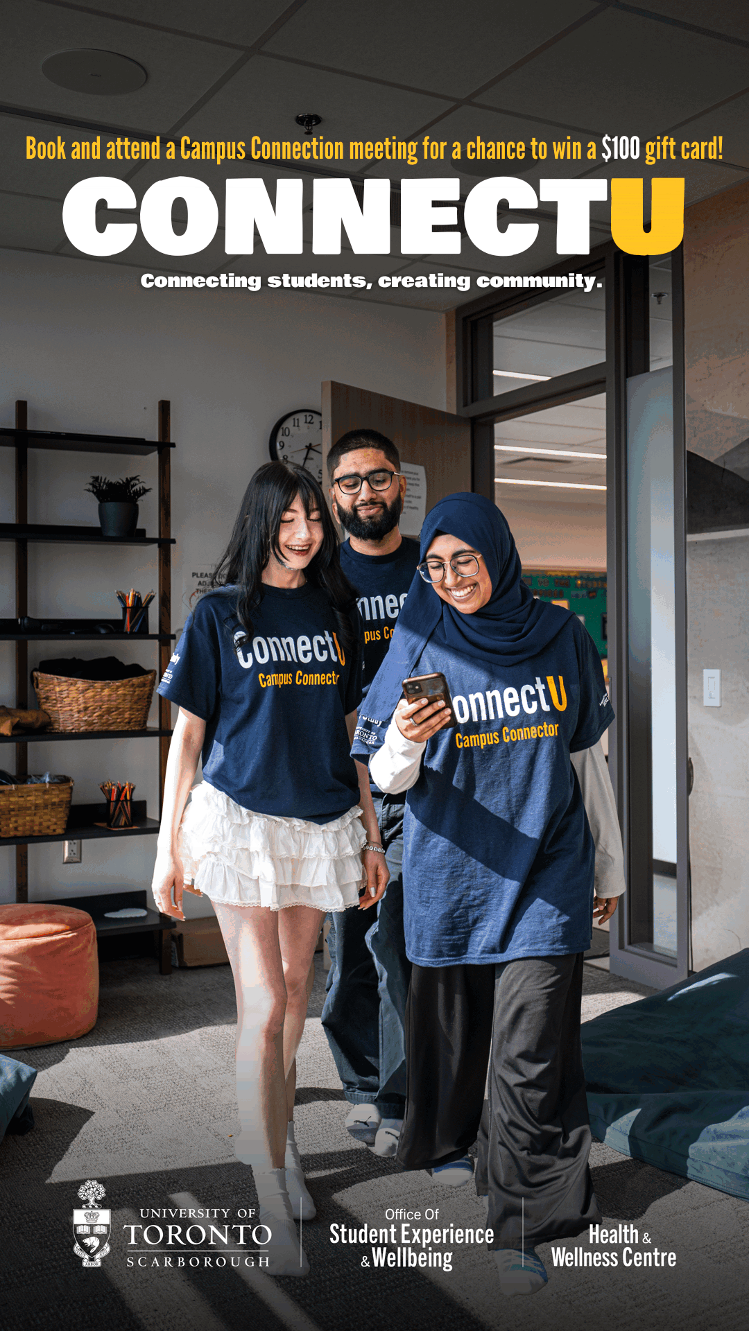 The goal was simple: Create eye catching assets that showcase the "campus connectors" and encourage students to book an appointment to learn more about how they can improve their mental health by being involved in extra curricular activities within the UTSC community.